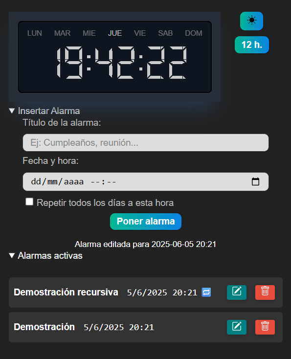 - Ahora si lo desea puede poner la alarma para que sea recurrente, osea que suene todos los días a la misma hora